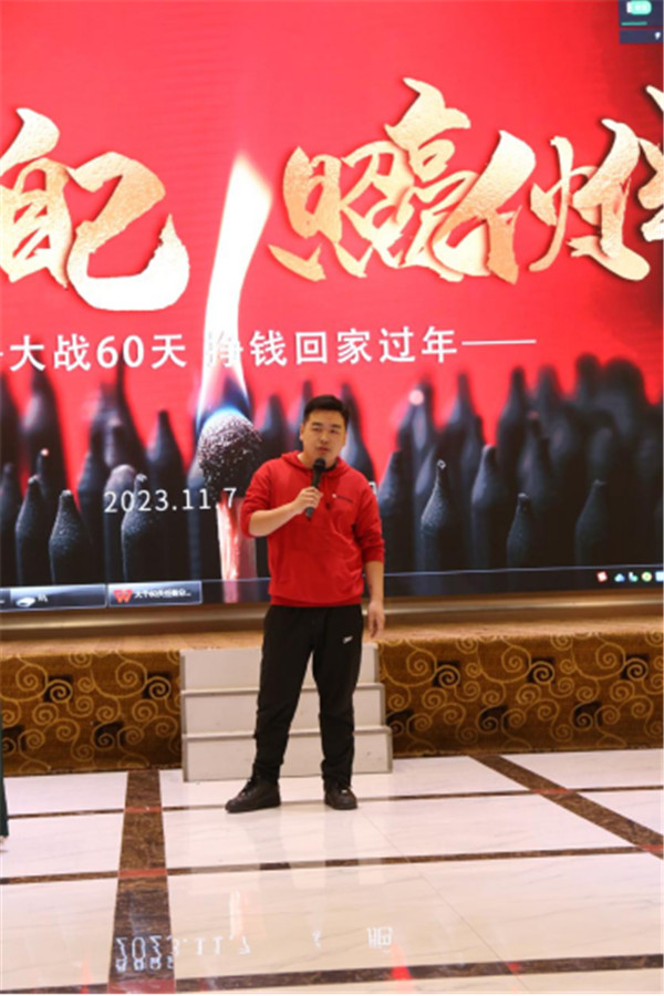 國林地板家裝戰(zhàn)略部負(fù)責(zé)人程禹博在大會上發(fā)表了激情澎湃的講話,對大干60天完成戰(zhàn)略部任務(wù)非常有信心,他的發(fā)言也點(diǎn)燃了其他兄弟部門的信心。